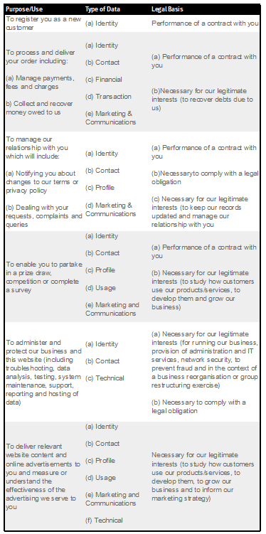 Purposes for which we will use your personal data